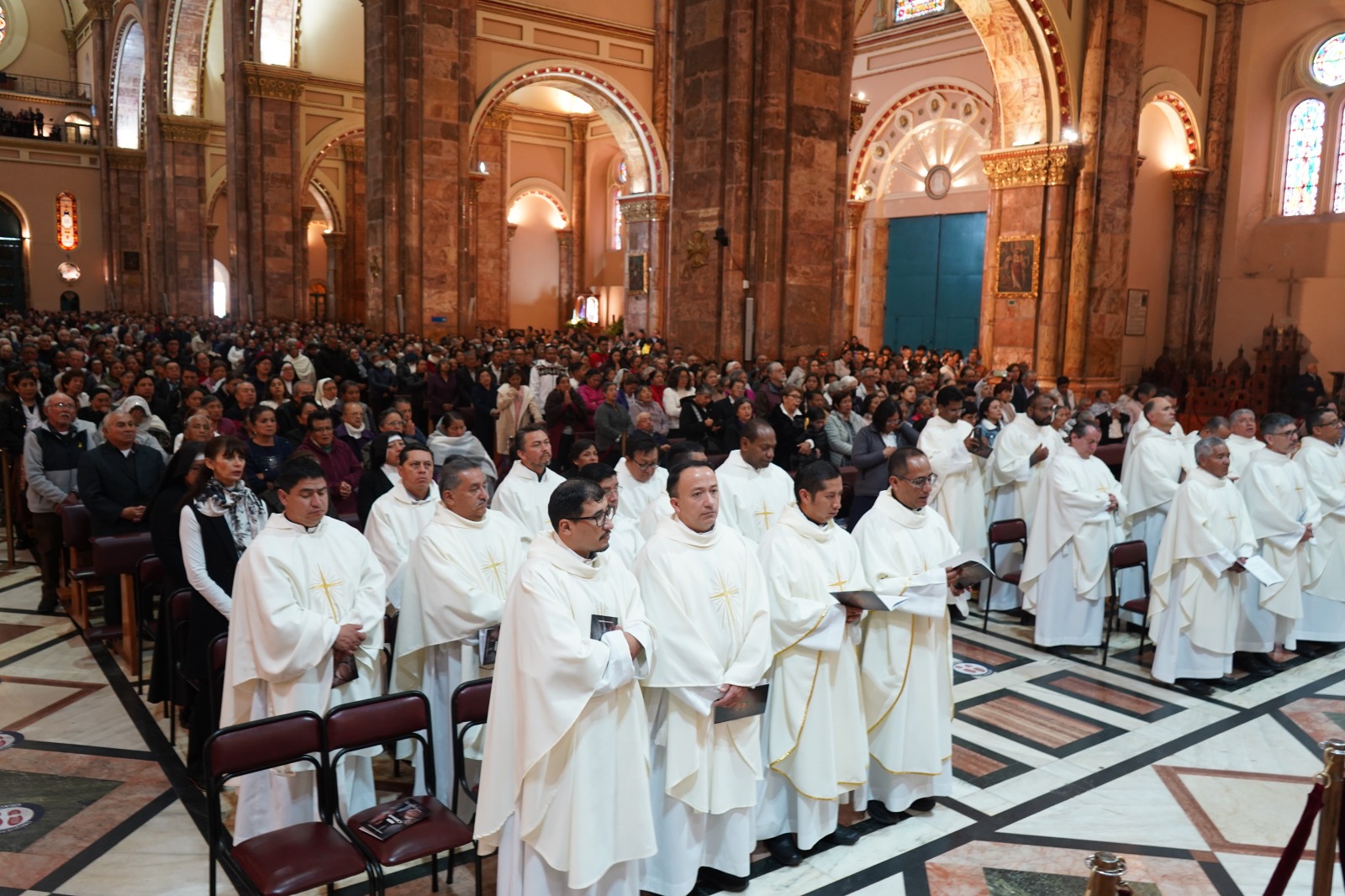 El jueves 19 de marzo, a las 10:00, recibieron la Ordenación Sacerdotal los diáconos JORGE LUIS VARELA BASURTO y RENÉ ROMEO YUNGA MAYAGUARI. La solemne Eucaristía que se celebró en la Catedral de la Inmaculada Concepción, fue presidida por Monseñor Marcos Pérez Caicedo, Arzobispo de Cuenca, y concelebrada por Monseñor Oswaldo Vintimilla, Obispo de Azogues, y más de 90 sacerdotes del clero de Cuenca.